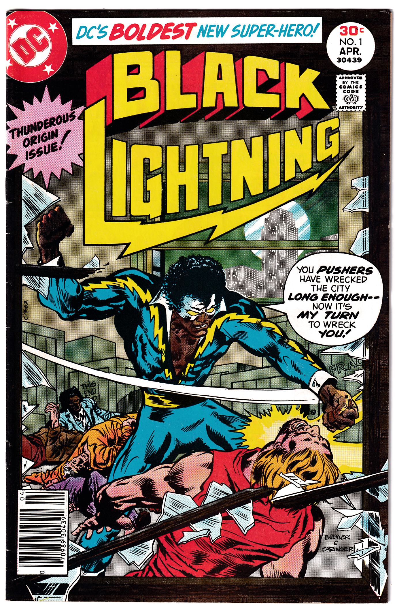 First appearance ad origin of Black Lightning (aka Jefferson Pierce)! First appearance of Peter Gambi. Art by Trevor Von Eeden and Frank Springer, story by Tony Isabella. Cover by Rich Buckler and Frank Springer.