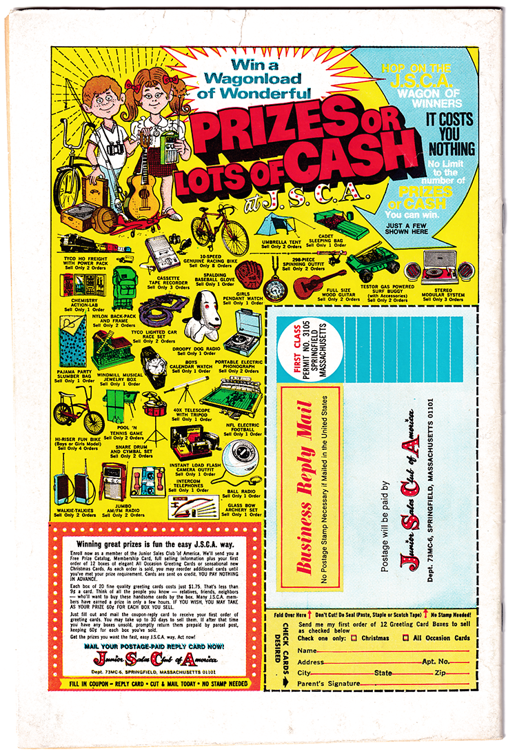Notes: Nice gloss and color, lays flat, half-inch tear back cover top middle, complete, clean staples, spine ticks. See pictures.