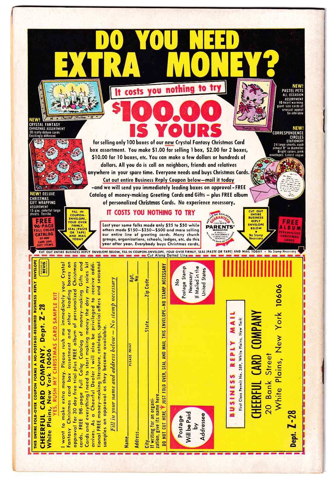 Notes: Lays flat, decent gloss and color, crease top right front cover, clean top staple and rusted bottom staple, complete. See pictures.