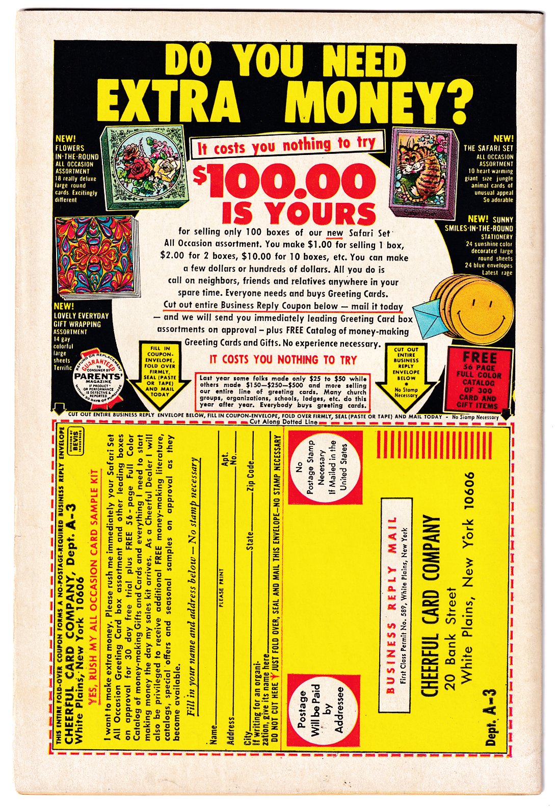 Notes: Lays flat, good gloss and color, some minor stains front and back, minor rusting bottom staple, complete. See pictures.