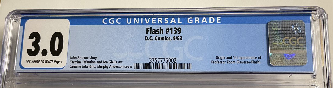 FLASH #139 CGC 3.0 1st appearance Prof. Zoom Reverse Flash! KEY!
