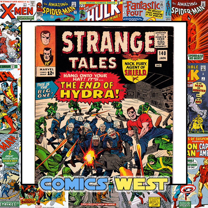 This one gets wild! Hydra attacks Nick Fury, Dumdum, and SHIELD on Hydra Skateboards. Tony Stark goes into space to disarm a bomb. Dormammu challenges Doctor Strange to a fight with Earth as the prize! Jack Kirby cover and art, Steve Ditko art and script.